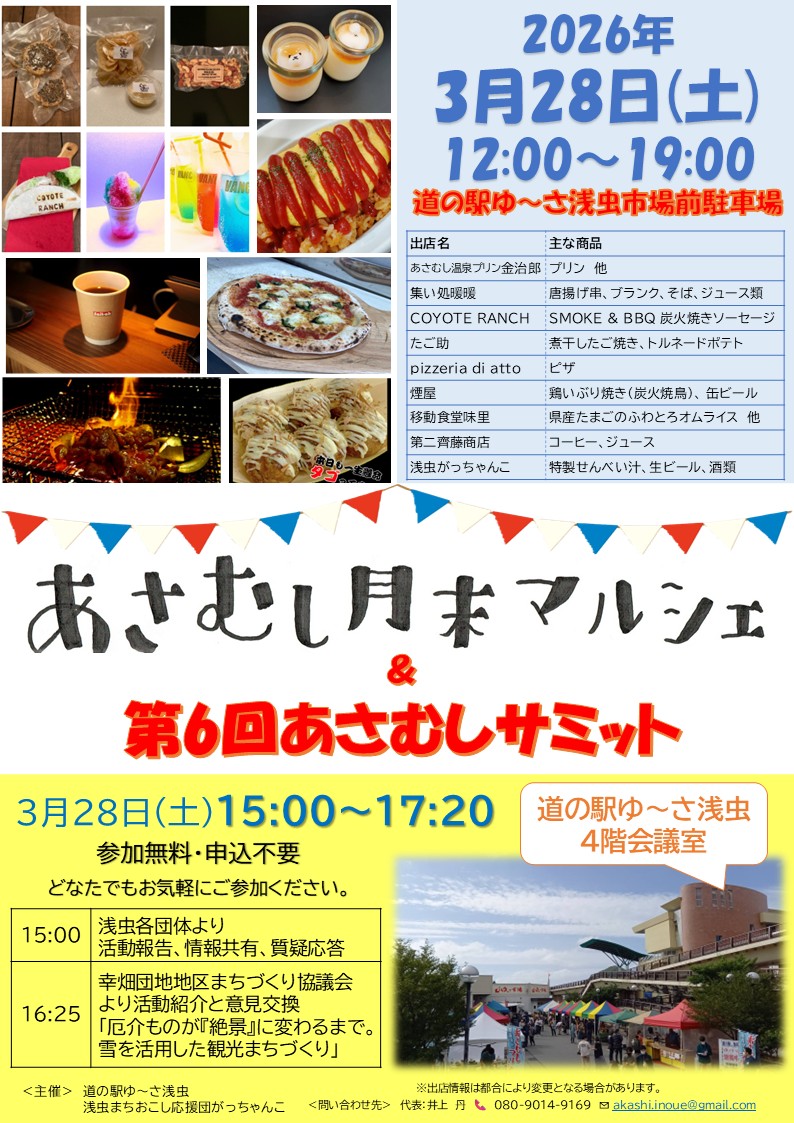 3月あさむし月末マルシェ 3月まで最終日曜日に道の駅ゆ~さ浅虫3階で開催します!